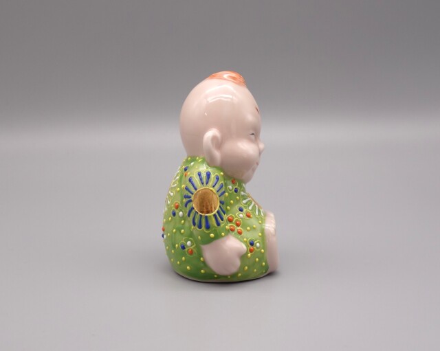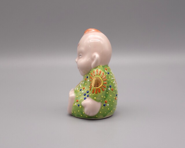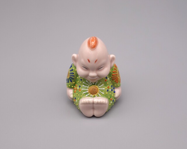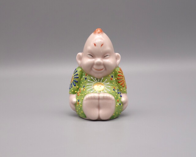 日本の色絵磁器の代表として独特の力強い様式美が高く評価されている九谷焼(くたにやき)のビリケンです。
