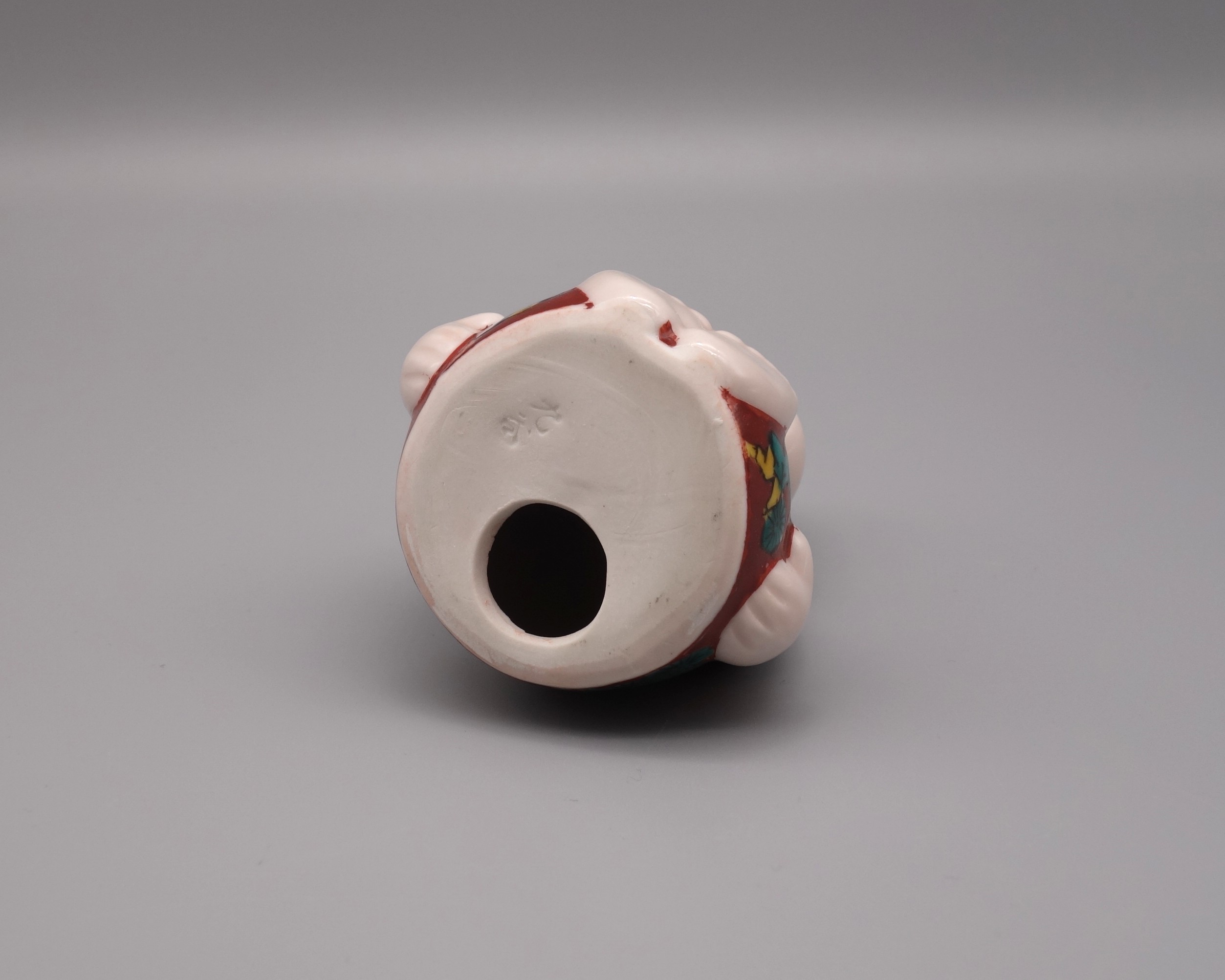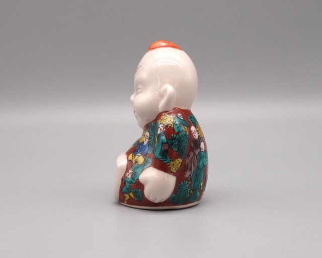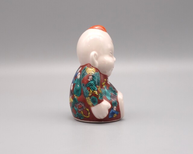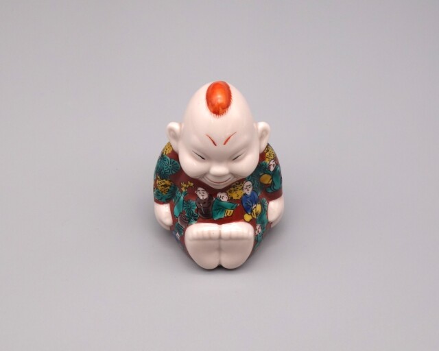 日本の色絵磁器の代表として独特の力強い様式美が高く評価されている九谷焼(くたにやき)のビリケンです。