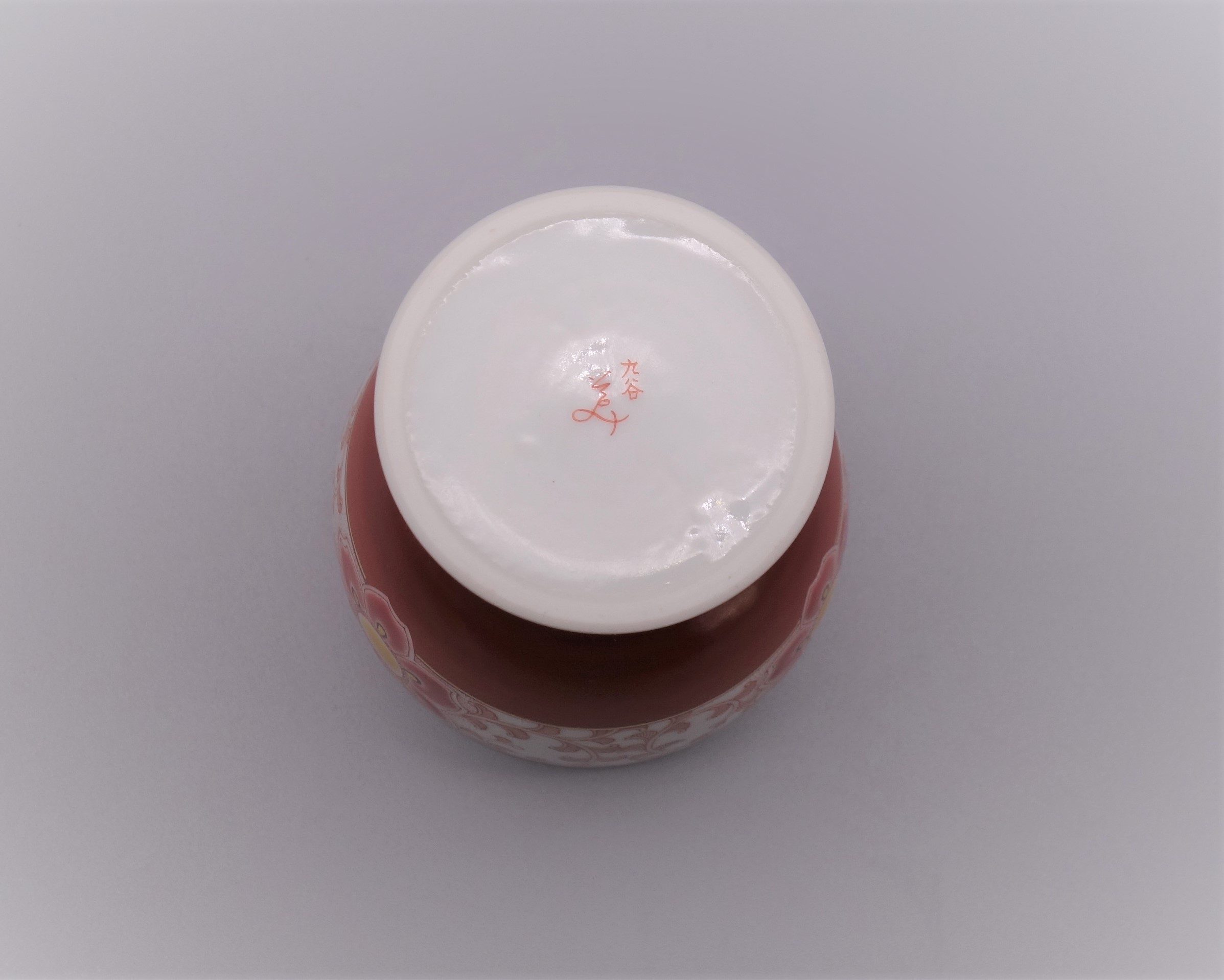 九谷焼製品の高台(ハマ)部分には釉薬が施してございません。この為 床の間、花台、棚、テーブル、漆仕上げなど塗装面の比較的柔らかく、傷つき易い物の上でお使いになる時は必ず毛氈、敷物をご使用下さい。