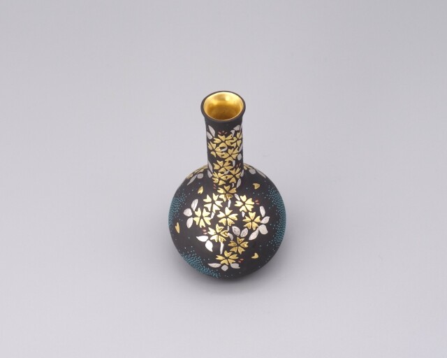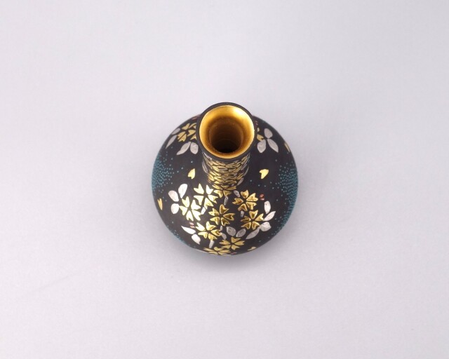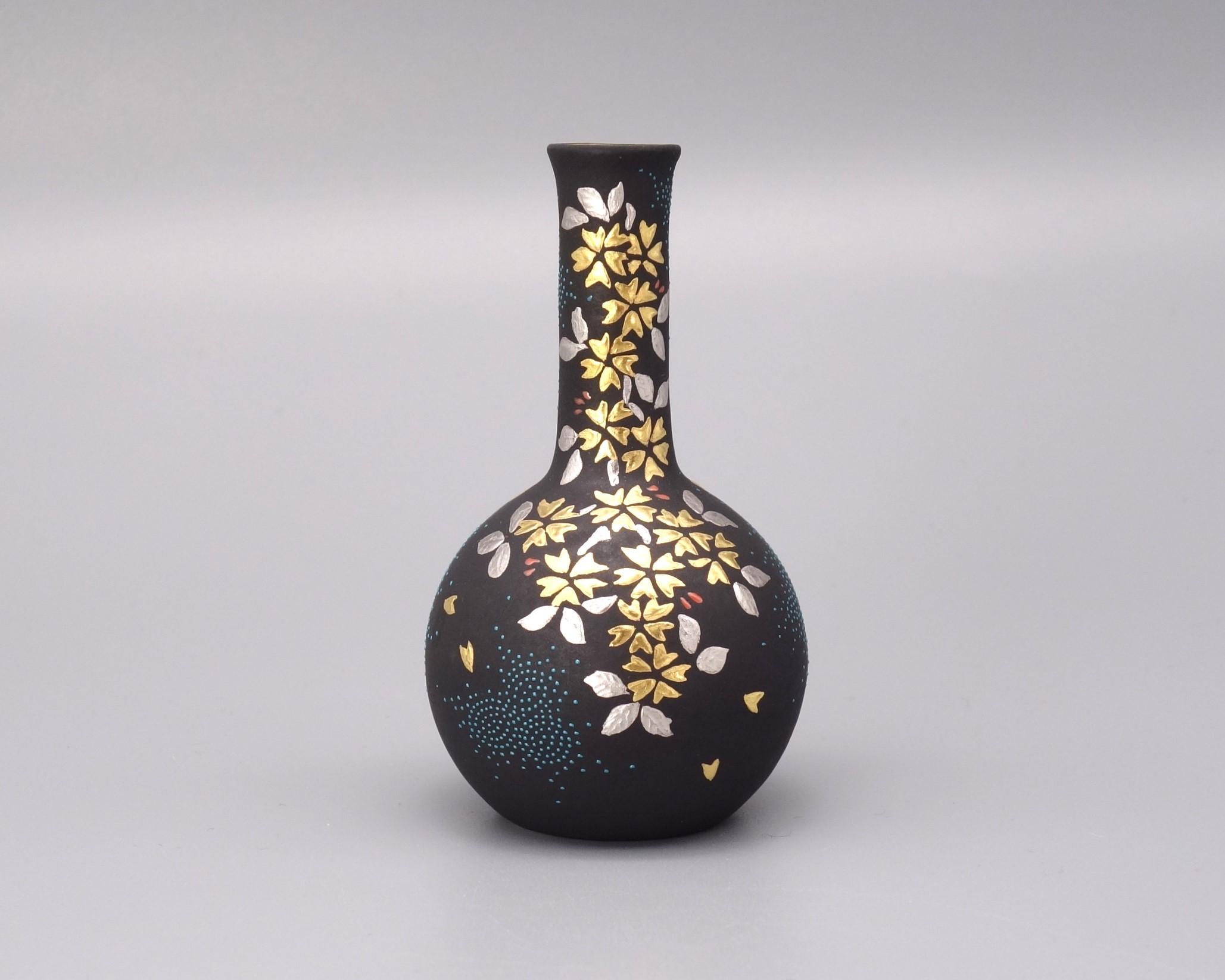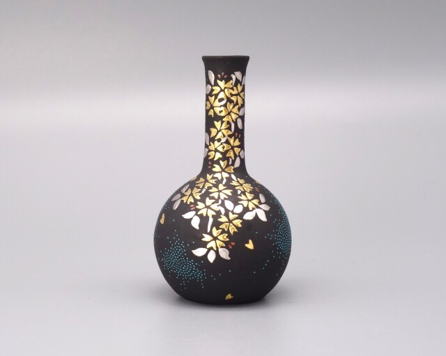 | 製品名: | 小花入(鶴首) 白金盛渦打青粒枝垂桜図 [桐箱入] |