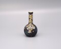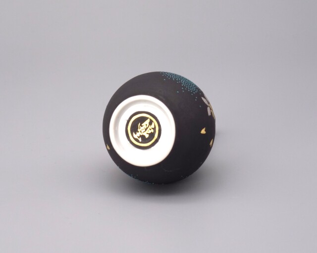 渦打青粒の名手【仲田錦玉】によって仕上げられた小さい「花入」です。 今回の作品は、丁寧にロクロで成形した素地に青地を施し、白金盛(プラチナ)で「枝垂桜」をあしらっております。またその「枝垂桜」を引き立たせるように渦打青粒を絶妙なバランスで配しております。 小ぶりな大きさが可愛らしい逸品です。
