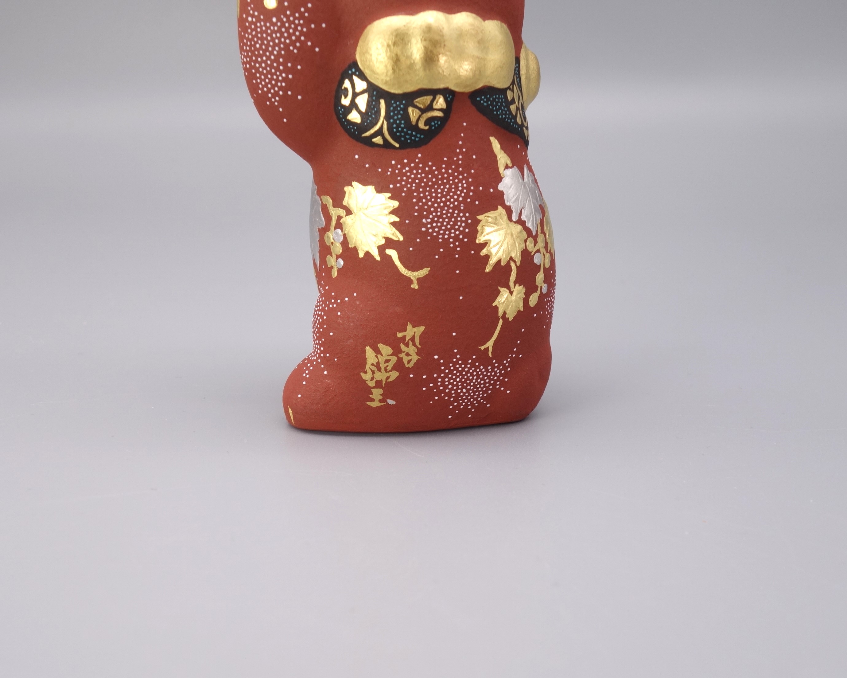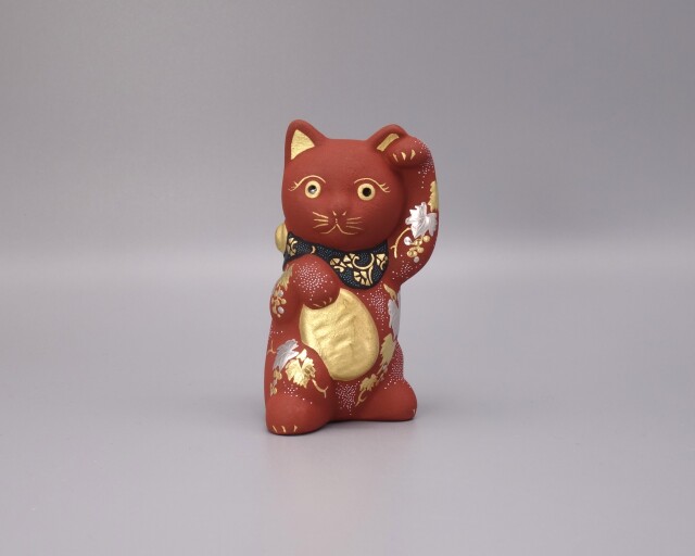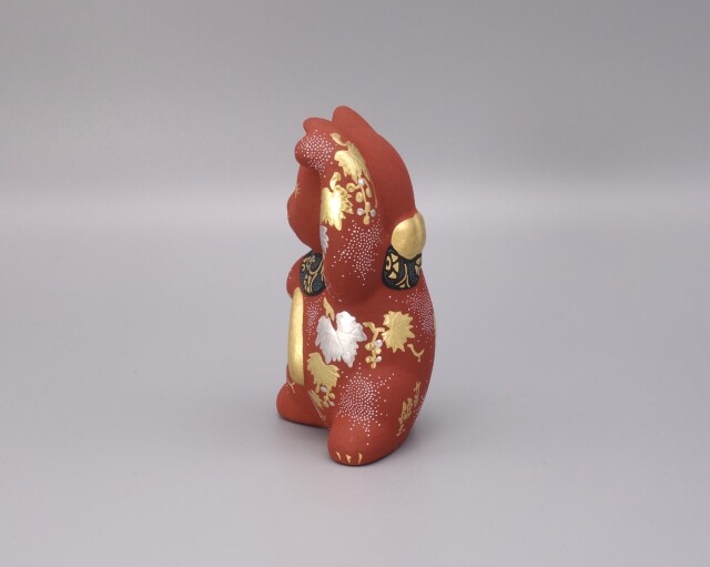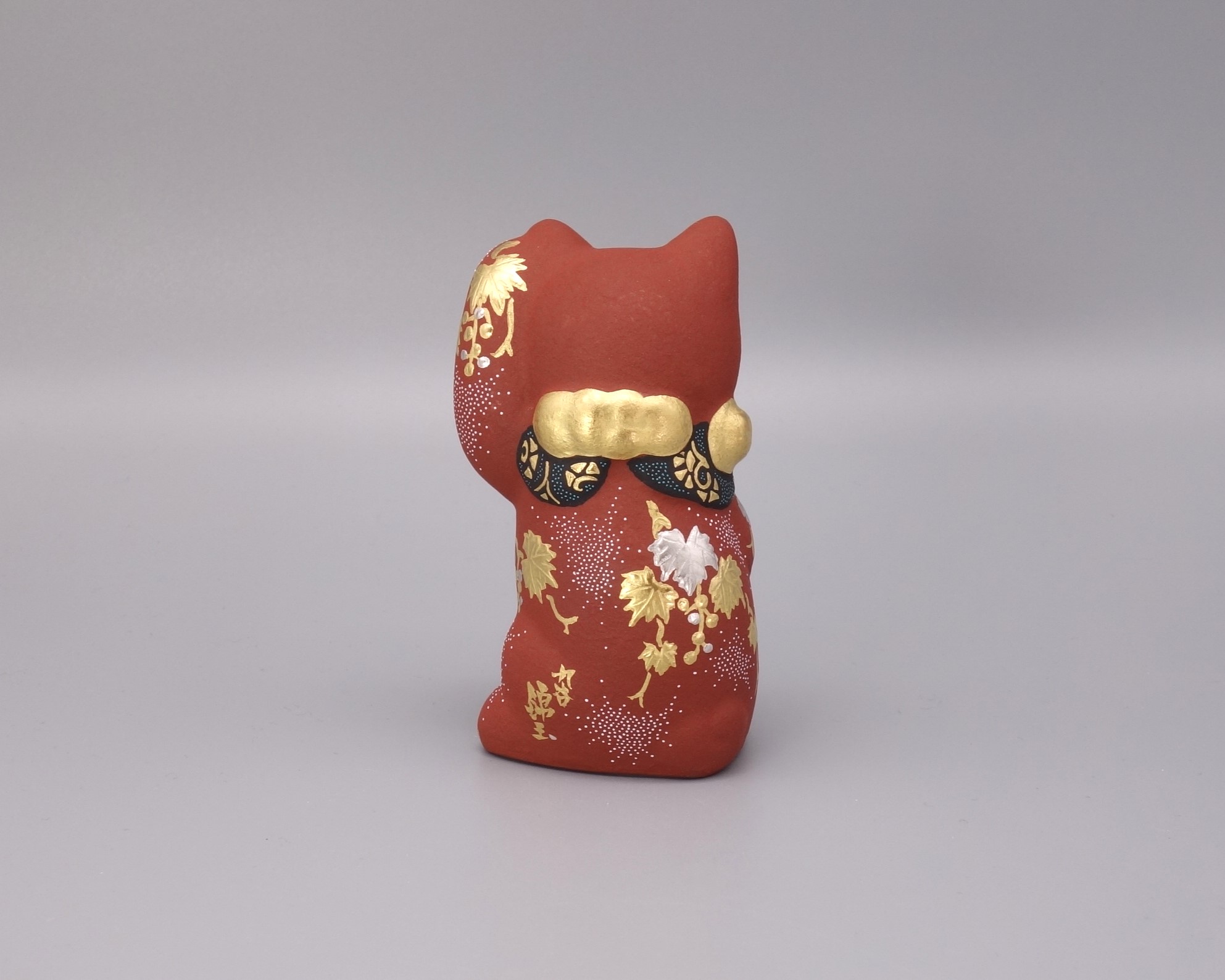 | 製品名: | 3.5号小判持招猫(左手上げ) 朱地白金盛渦打青白粒葡萄図(木札付) [桐箱入] |