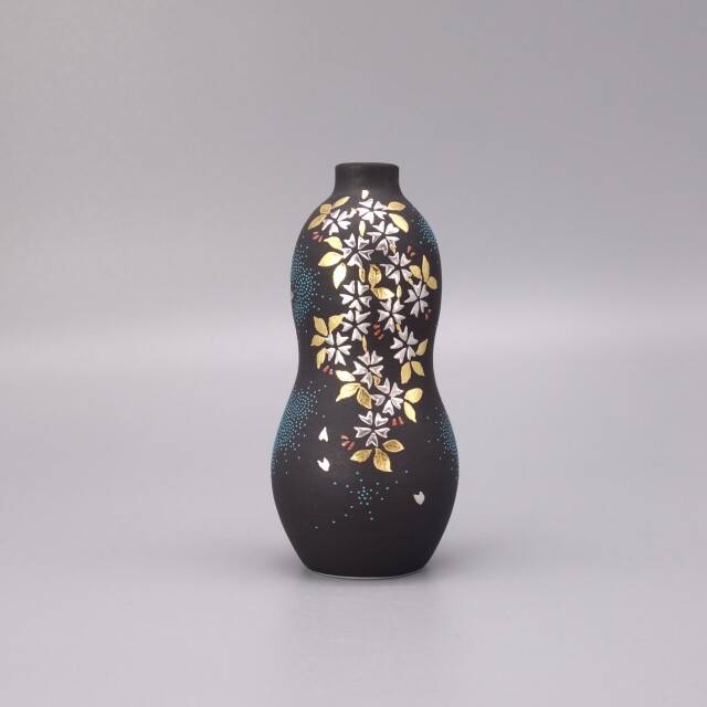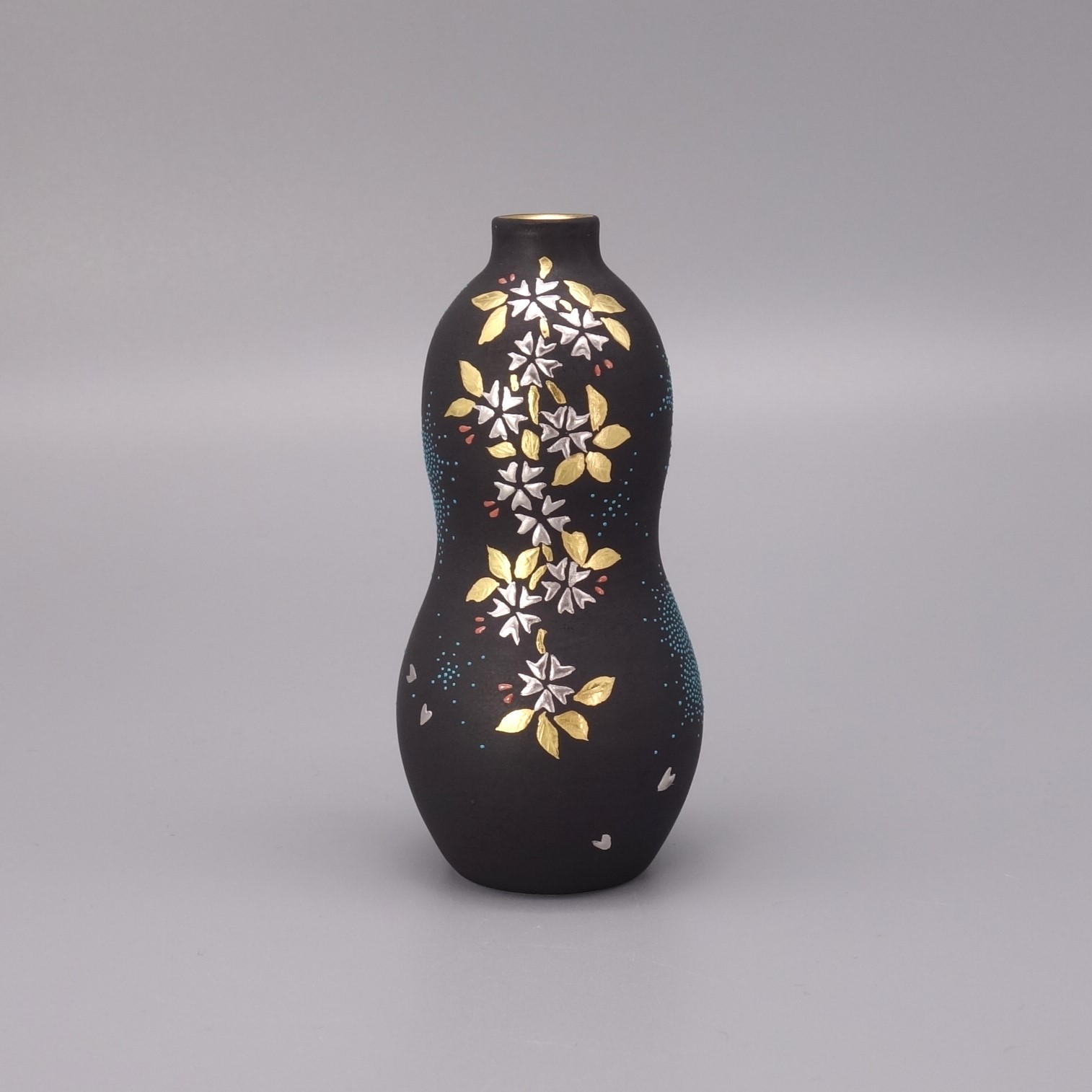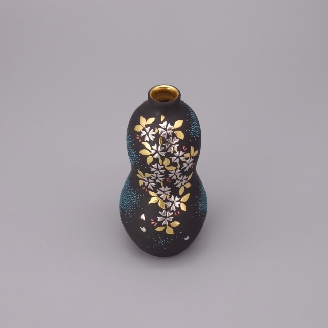 | 製品名: | 小花入(瓢箪形) 白金盛渦打青粒枝垂桜図 [桐箱入] |