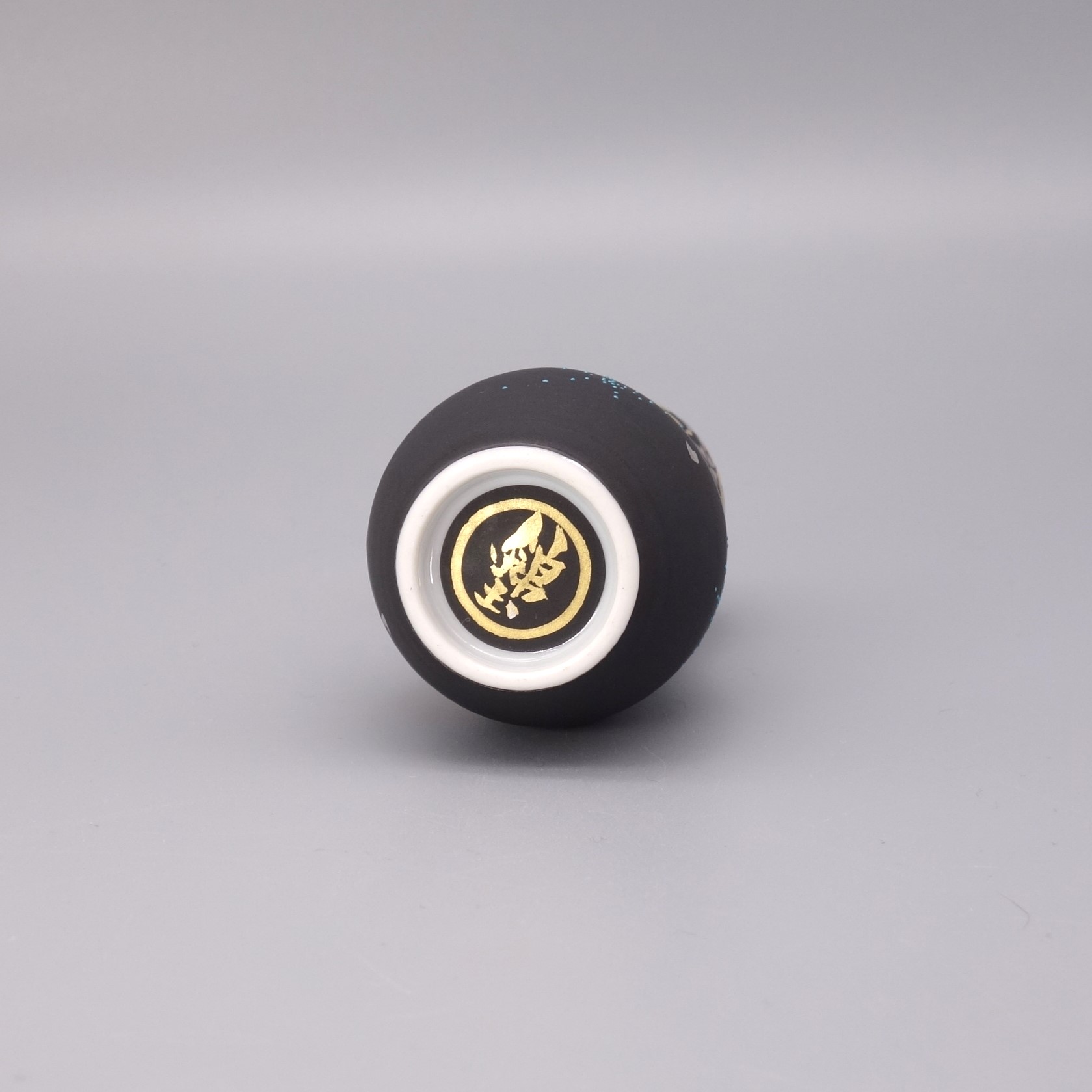 渦打青粒の名手【仲田錦玉】によって仕上げられた小さい「花入」です。 今回の作品は、轆轤(ロクロ)で成形した素地に青地を施し、白金盛(プラチナ)と金彩で「枝垂桜」をあしらっております。またその「枝垂桜」を引き立たせるように渦打青粒を絶妙なバランスで配しております。 小ぶりな大きさが可愛らしい逸品です。
