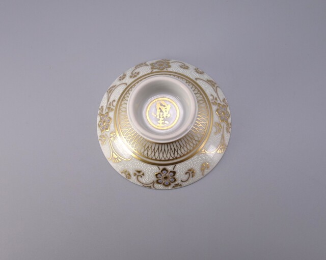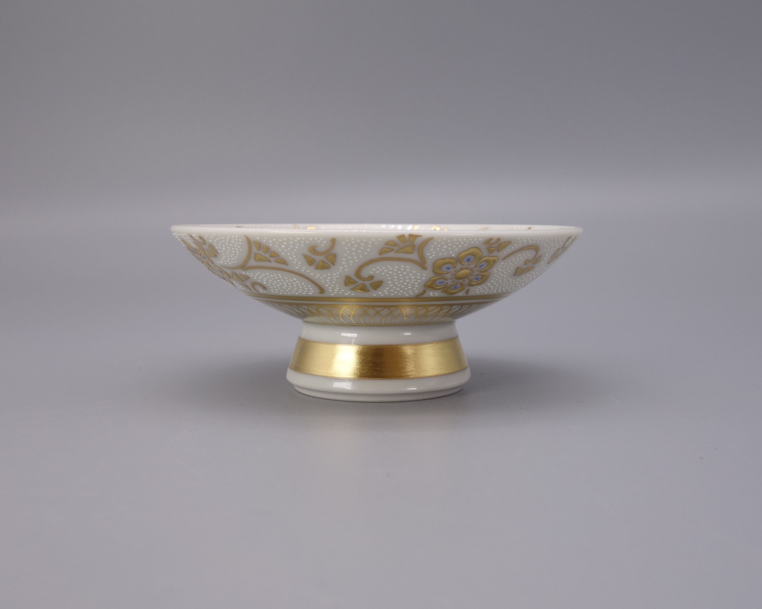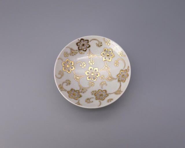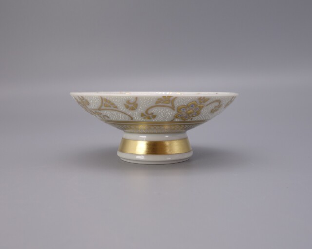 | 製品名: | 酒盃(両面) 渦打白粒盛金宝相華唐草文 [桐箱入] |