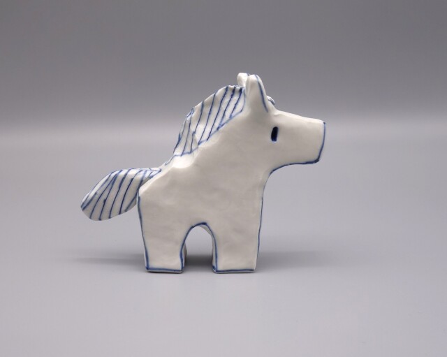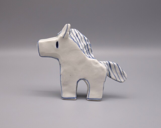 こどもの器で有名な女性作家・村田菜穂美の「干支置物(うま)」です。 毎年制作している大人気の干支シリーズです。独特な重量感のある手造りの素地に村田さんの感性を活かしシンプルに青で可愛く描いております。 数量限定になります。 ※手造りの焼き物のため、多少の寸法・絵柄・色彩・重量の違い、及び一時的な品切れはご容赦下さい。
