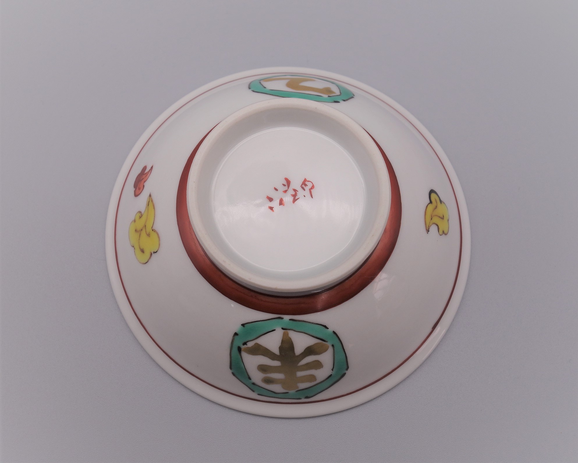 九谷焼製品の高台(ハマ)部分には釉薬が施してございません。この為 床の間、花台、棚、テーブル、漆仕上げなど塗装面の比較的柔らかく、傷つき易い物の上でお使いになる時は必ず毛氈、敷物をご使用下さい。