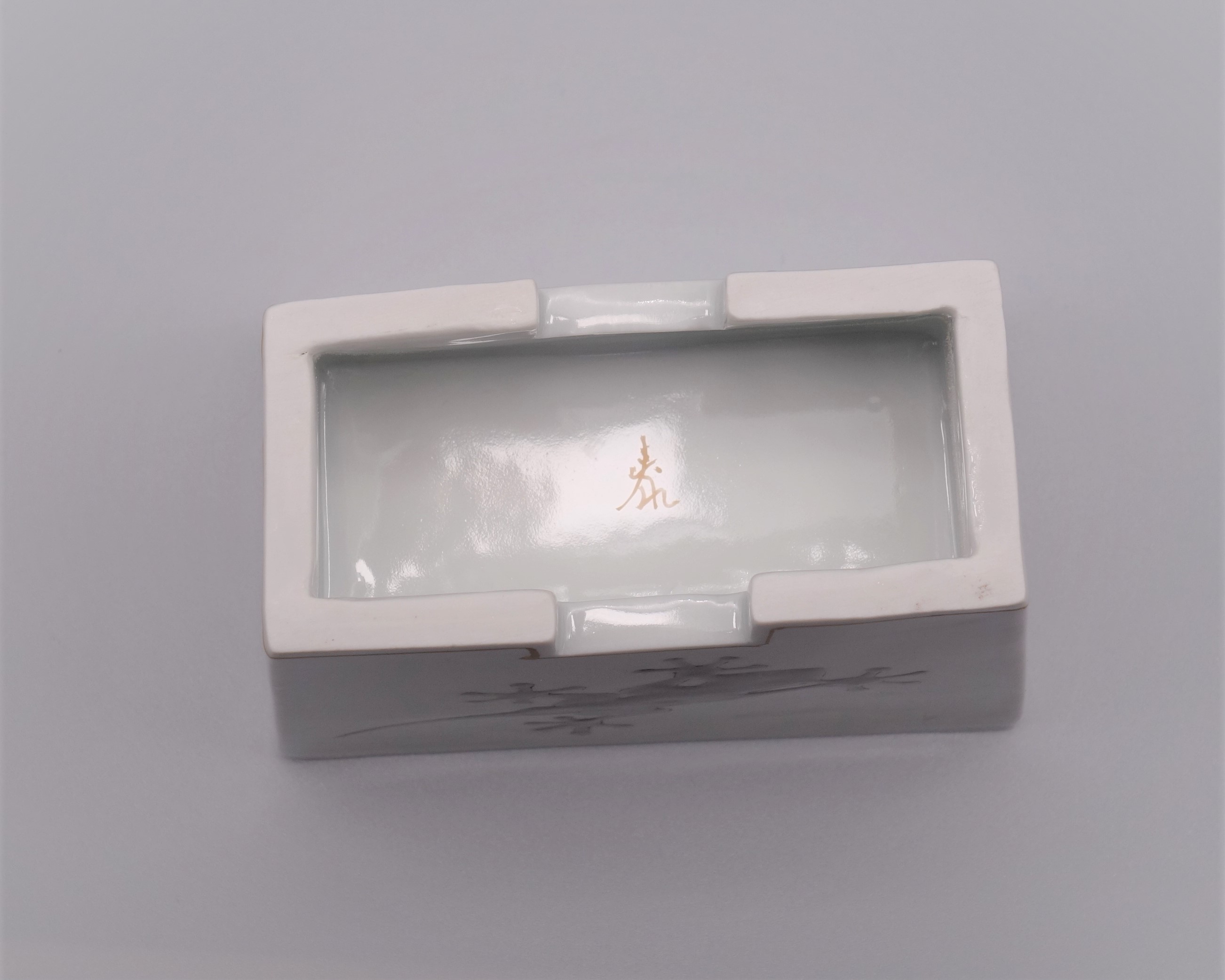 九谷焼製品の高台(ハマ)部分には釉薬が施してございません。この為 床の間、花台、棚、テーブル、漆仕上げなど塗装面の比較的柔らかく、傷つき易い物の上でお使いになる時は必ず毛氈、敷物をご使用下さい。