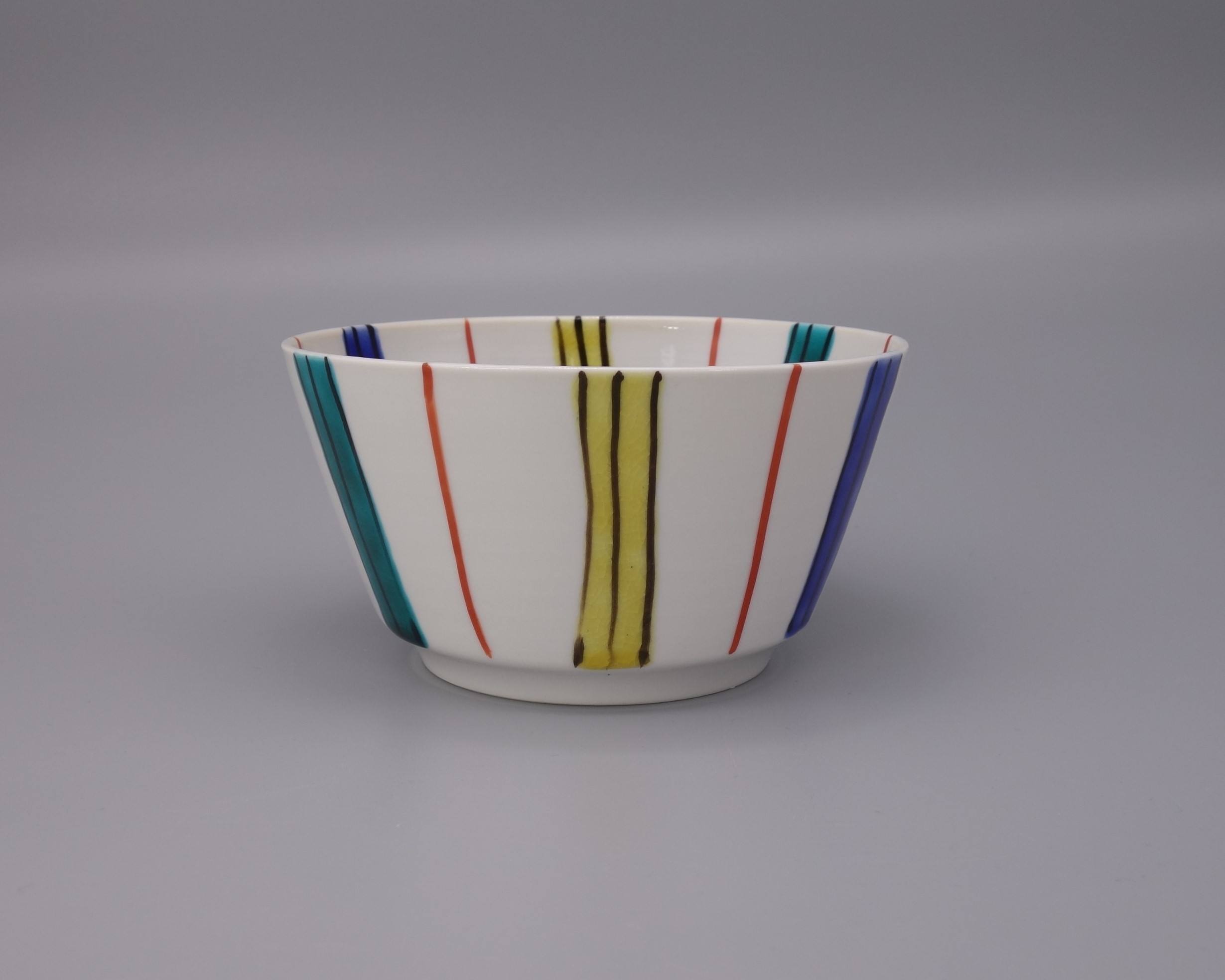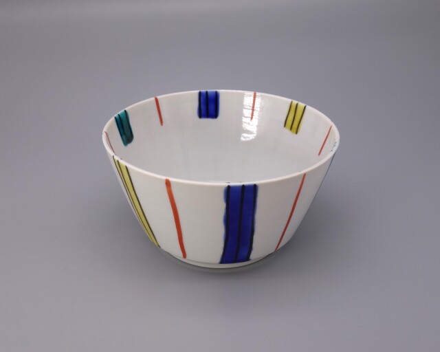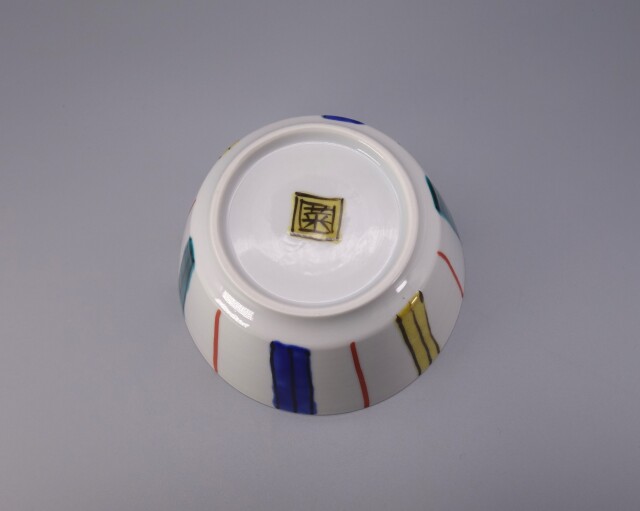 色とりどりの線を「十草」の紋様を描き仕上げに色絵を施しております。