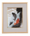 正しく鯉が滝を登る姿を躍動感のあるタッチで表現しております。