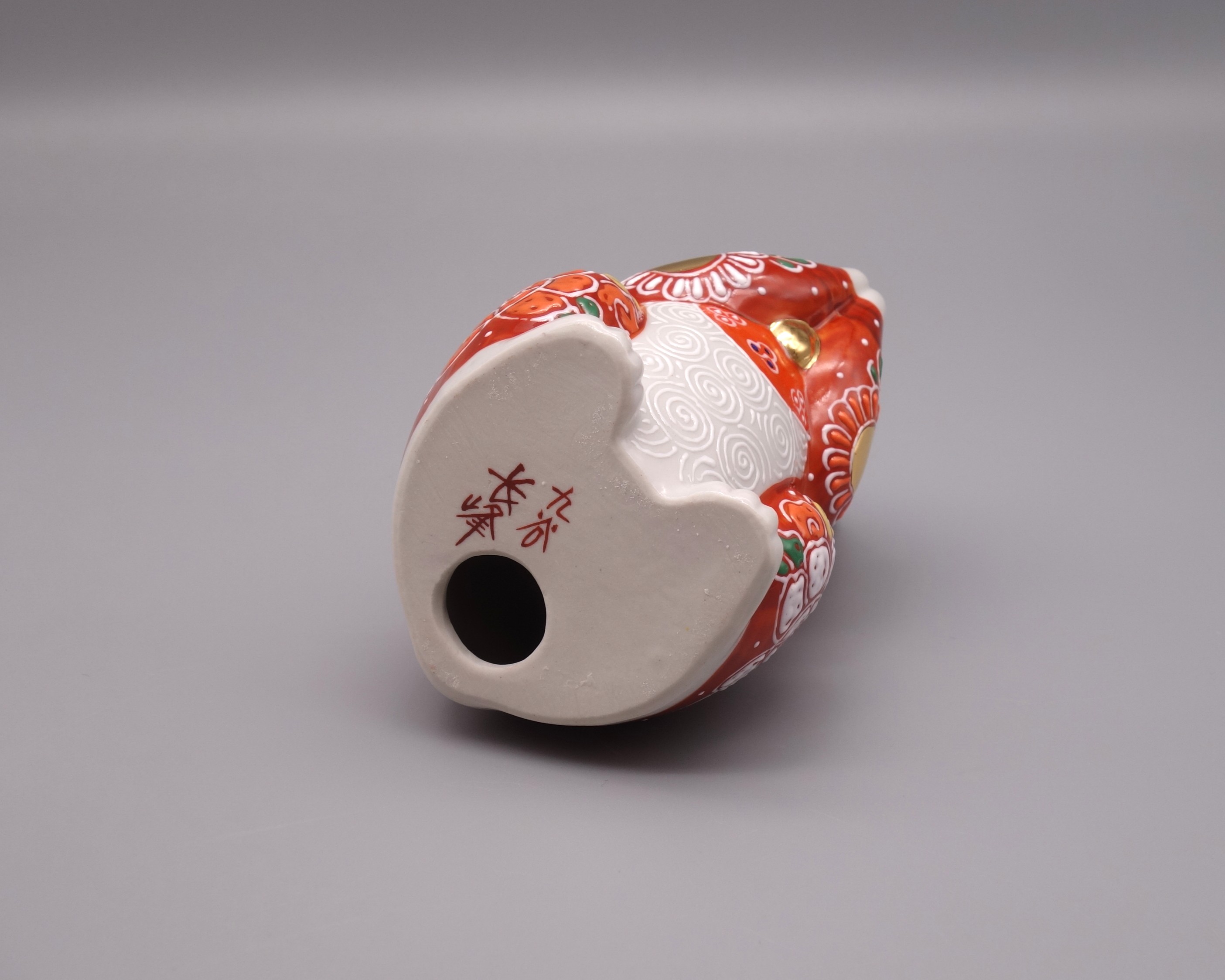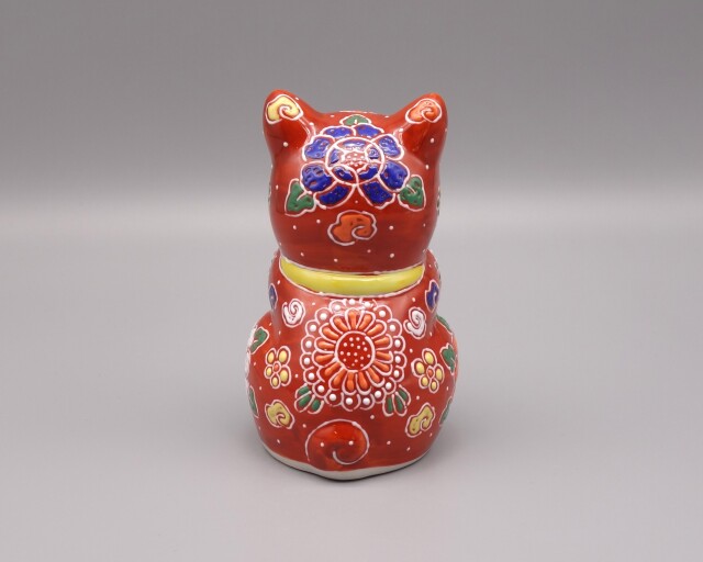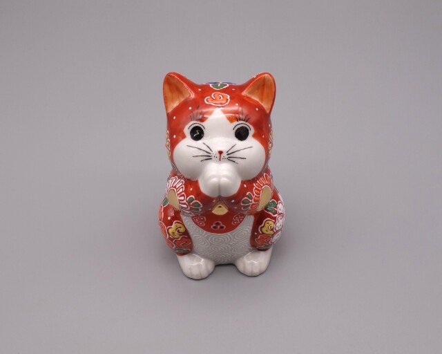 日本の色絵磁器の代表として独特の力強い様式美が高く評価されている九谷焼の 「招猫 」です。